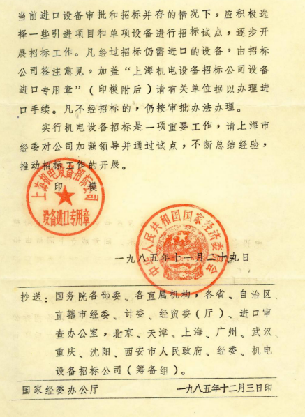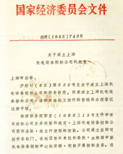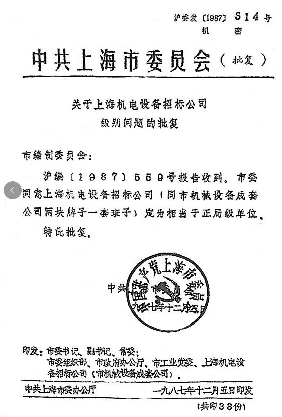 中共上海市委批復上海機電設備招標公司定為相當于“正局級”單位。