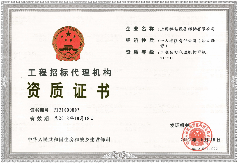 國家財政部授予的首批《政府采購代理機構甲級資格證書(shū)》,以及國家發(fā)改委授予的首批《中央投資項目招標代理機構甲級資格證書(shū)》。