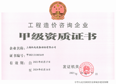 上海市住建委授予《工程造價(jià)咨詢(xún)企業(yè)資質(zhì)證書(shū)》,拓寬業(yè)務(wù)領(lǐng)域,實(shí)現了服務(wù)鏈的進(jìn)一步延伸。