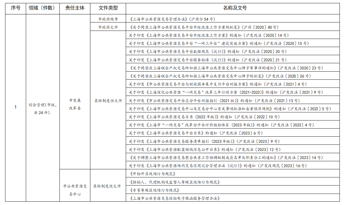 [上海市發(fā)改委]《關(guān)于印發(fā)<上海市公共資源交易規則目錄(2023年版)>的通知》(滬發(fā)改法〔2023〕17號)